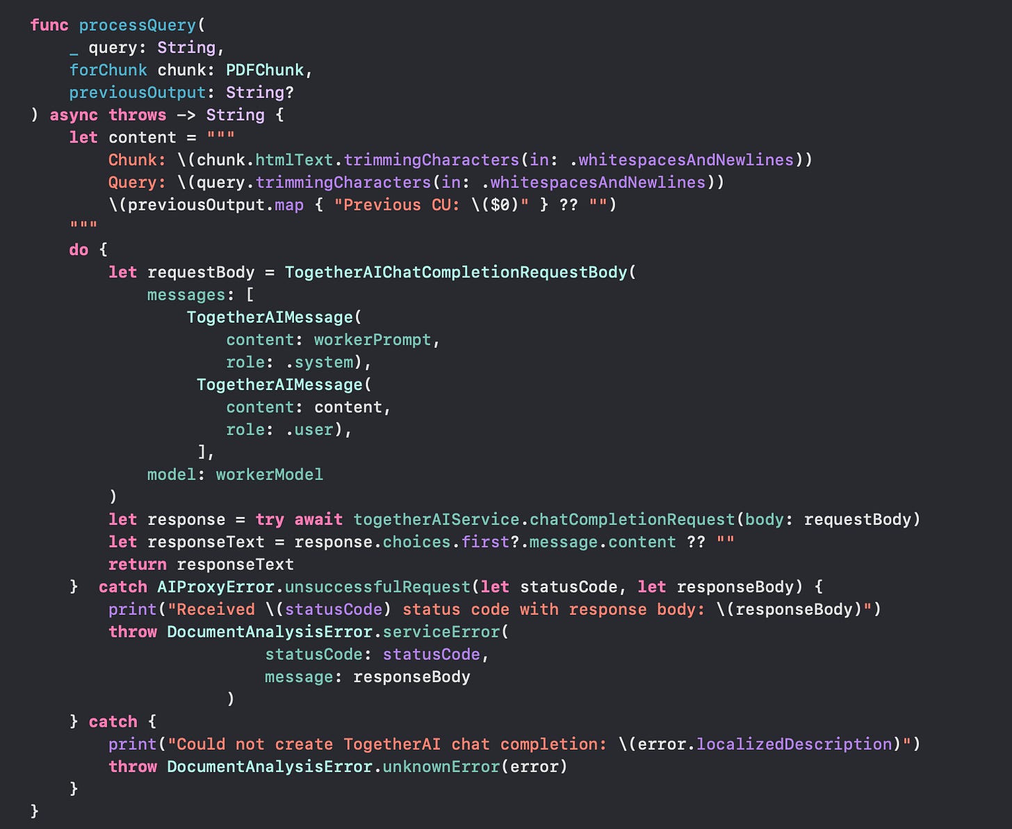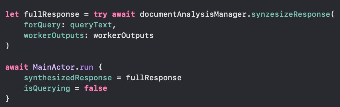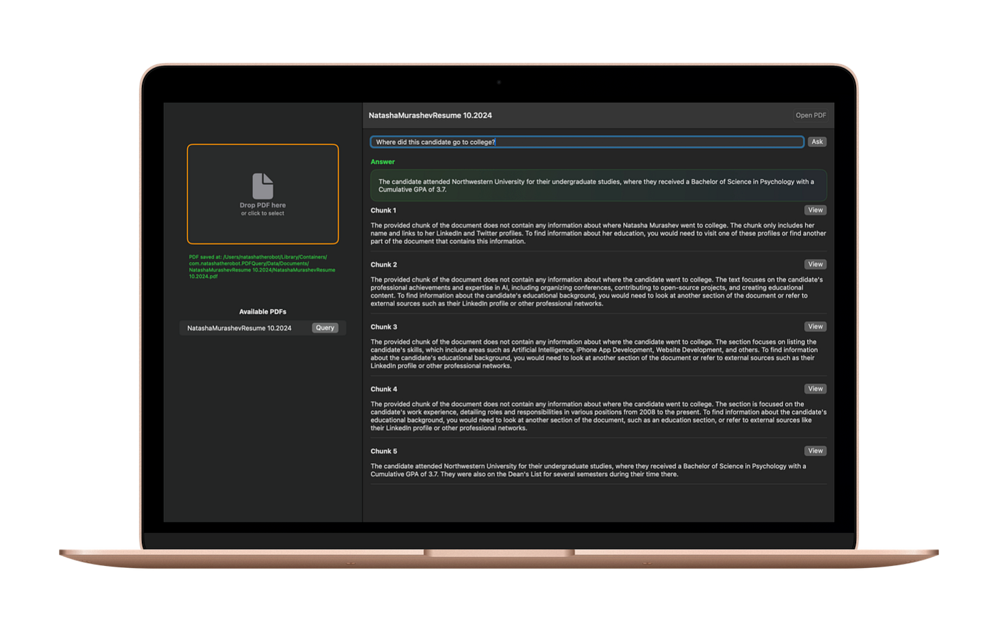 Inspired by these innovative approaches, I decided to experiment by combining them to create an app that queries PDFs solely in Swift.