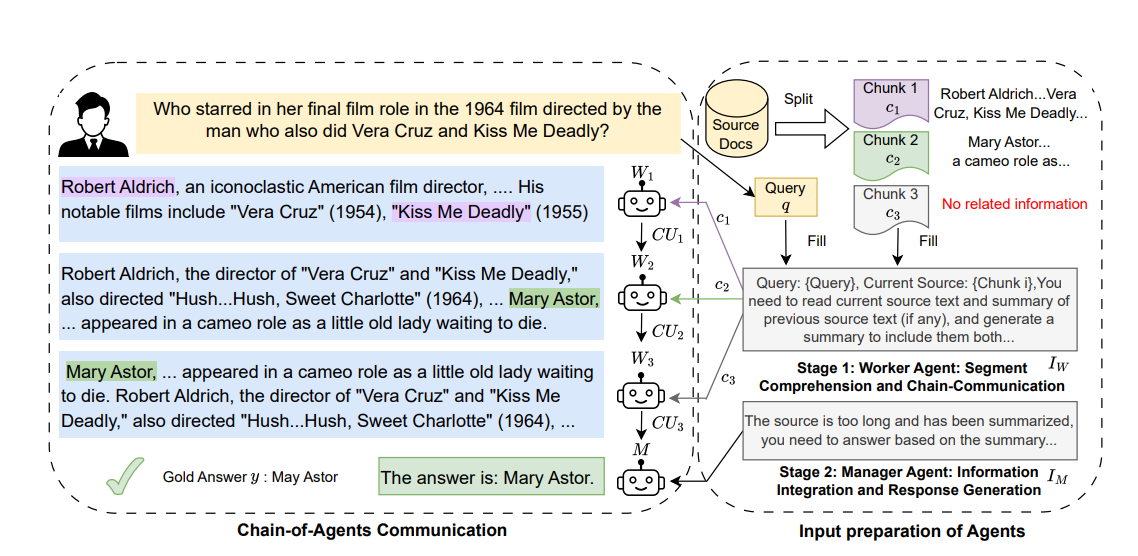 I was excited to see Rudrank Riyam’s implementation of the new Chain-of-Agents implementation of Google’s paper of this concept. The concept is actually super simple and makes a lot of sense in retrospect. The steps are as follows as illustrated in Google’s diagram: