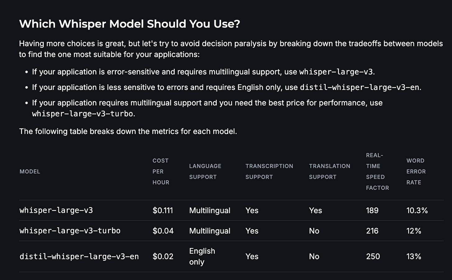 For example, if you’re building an app to help students record and review class lectures, Whisper can transcribe spoken content accurately. However, it won’t capture visual elements such as notes written on the board or slides from a PowerPoint presentation. This means the transcription may lack key contextual information that was conveyed visually during the lecture. As a developer, you’ll need to find ways to bridge this gap through your app’s UI and features.