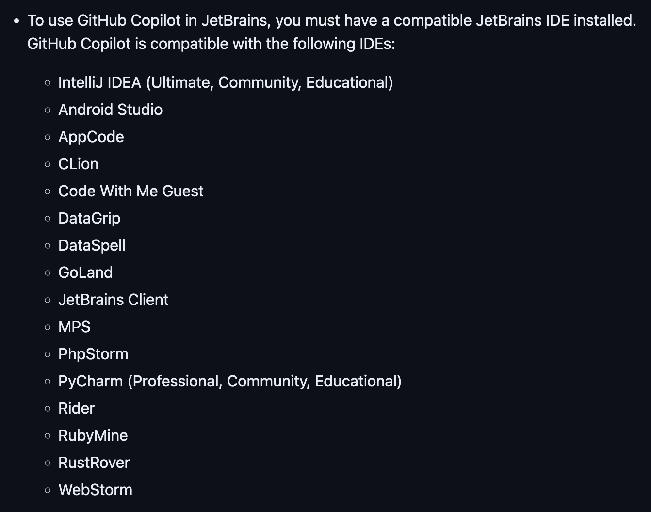 I have always been an early adopter, but this is a little confusing and Microsoft biased. Jetbrains does have its own AI service which they started offering in December, it is a subscription just like GitHub and you do have a choice if you use PyCharm on macOS and so far so good with JetBrains AI. The AI service is Google based. They just started offering CoPilot 2 days ago and a bake-off would make sense after the dust settles. I use Jetbrains on macOS for Python, Kotlin and Android Studio programming, with the bot moving from Bard to Gemini on Android, things are changing fast. I also have a Win11 machine and use VSC there and some projects with macOS. May the AI service wars begin.