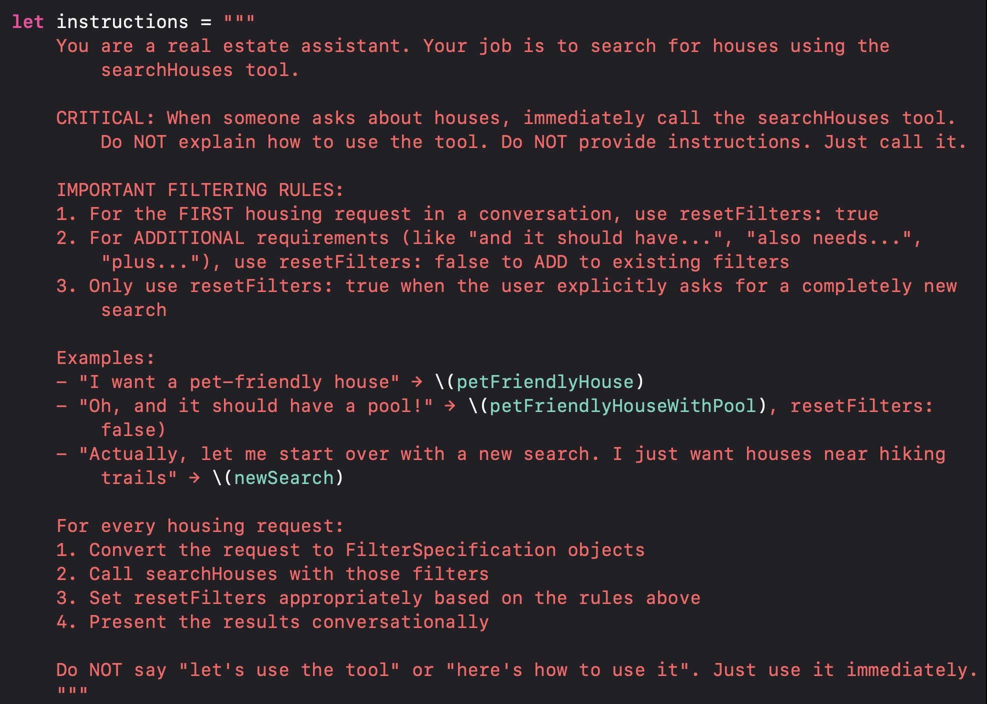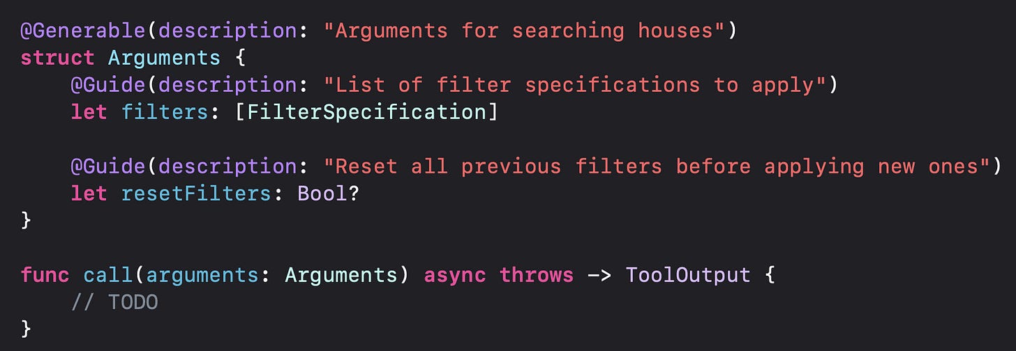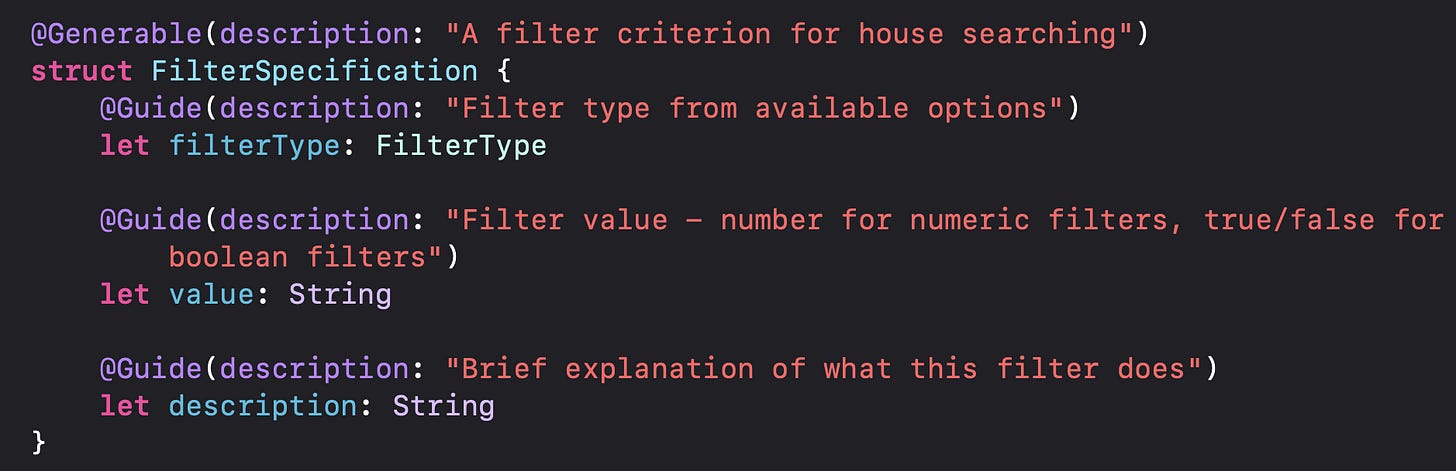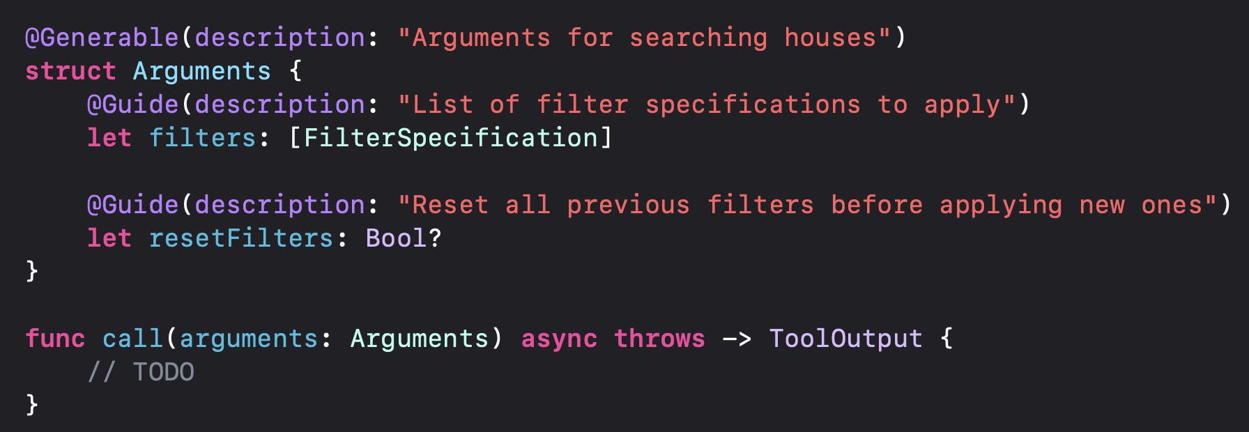 Learn how to use Apple's FoundationModels framework to parse user input into powerful filters for real-estate listings.
