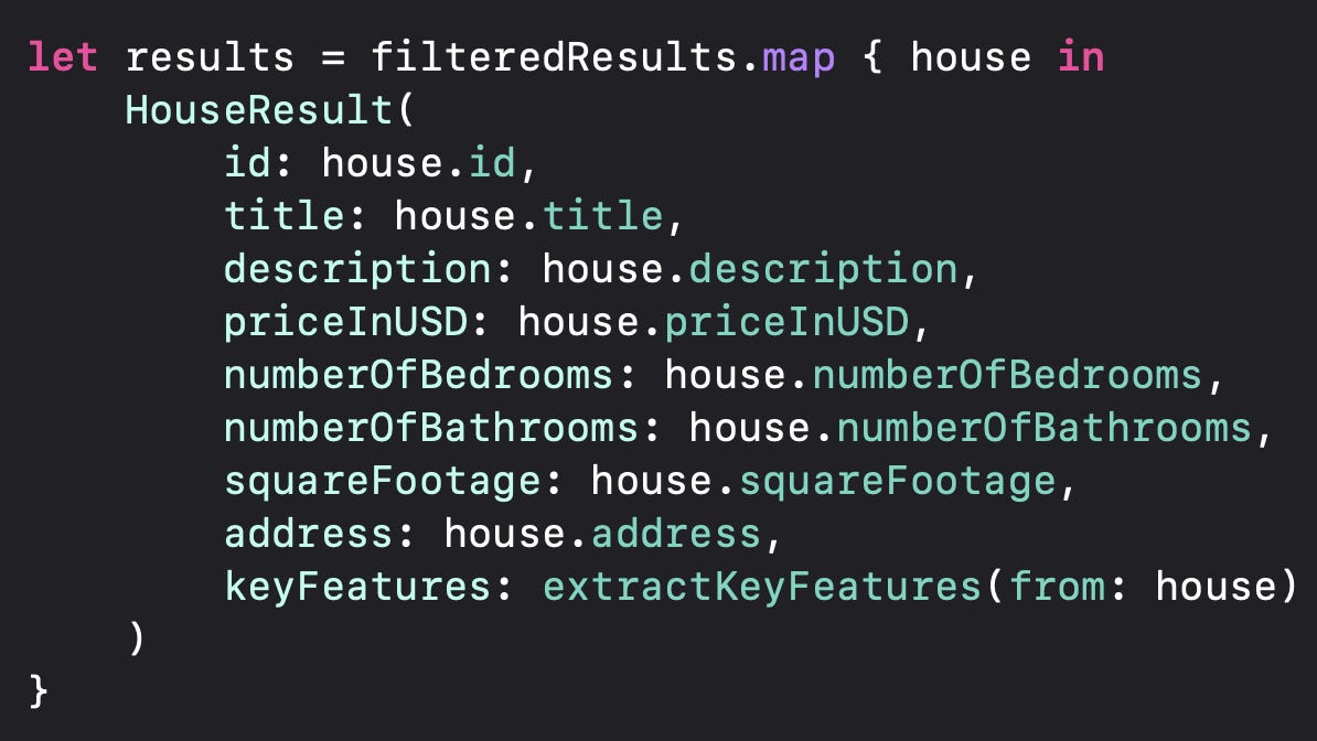 Let’s assume I have a comprehensive real-estate backend, which will translate to the following HouseListing