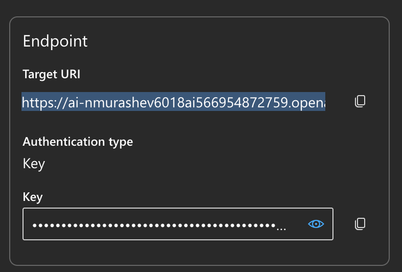 Now you will get information about your model deployment, including the URI, API Key, and Model Version. You will need this information for AIProxy.