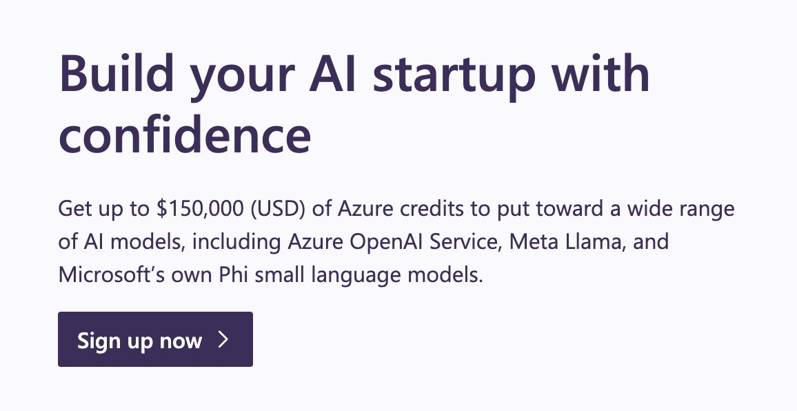 One of the biggest challenges in building AI-powered apps is figuring out how to price them. To mitigate the initial risk of uncertainty about user adoption and offer competitive pricing initially, startup founders / indie developers can sign up for the Microsoft for Startups program. The biggest benefit, among many, includes up to $150,000 in OpenAI credits. However, to use these credits, you must build with Microsoft Azure: