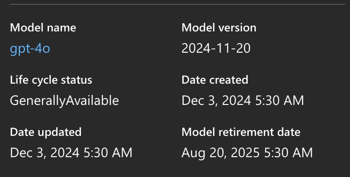 Note that the azureDeployment’s apiVersion is the Model Version, which you can find in your Azure’s model deployment page: