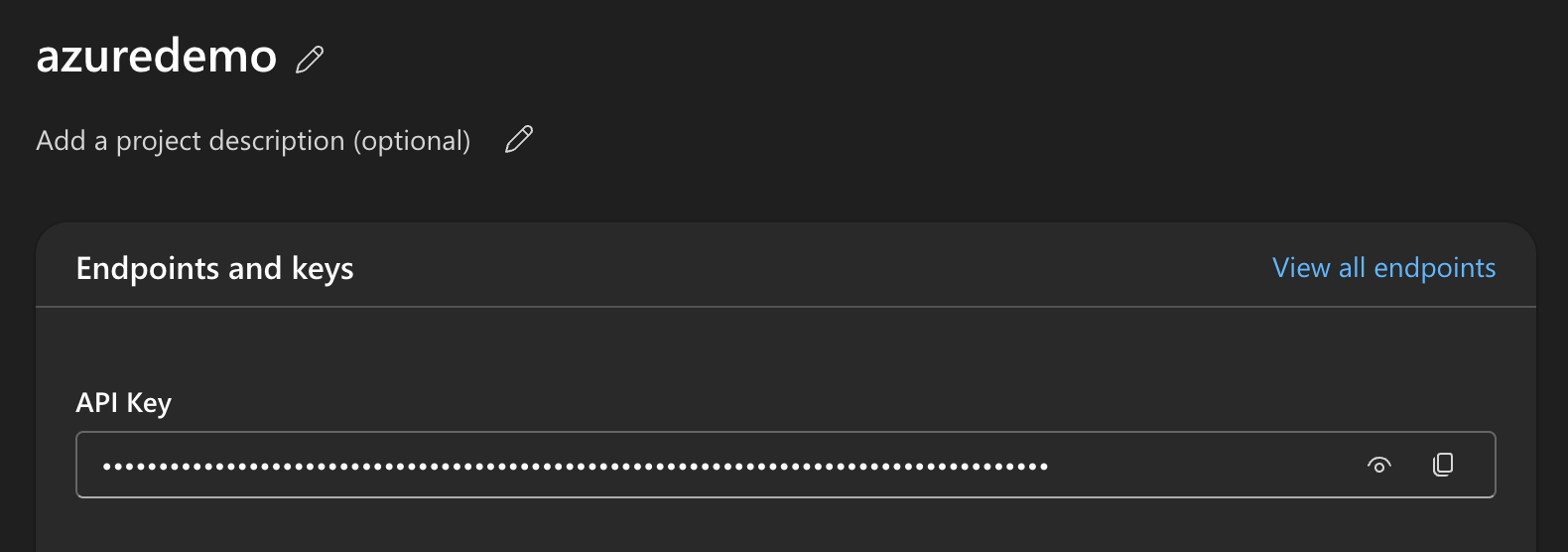 Once your service is added, you can click on the API Keys option in AIProxy to add the Azure API Key: