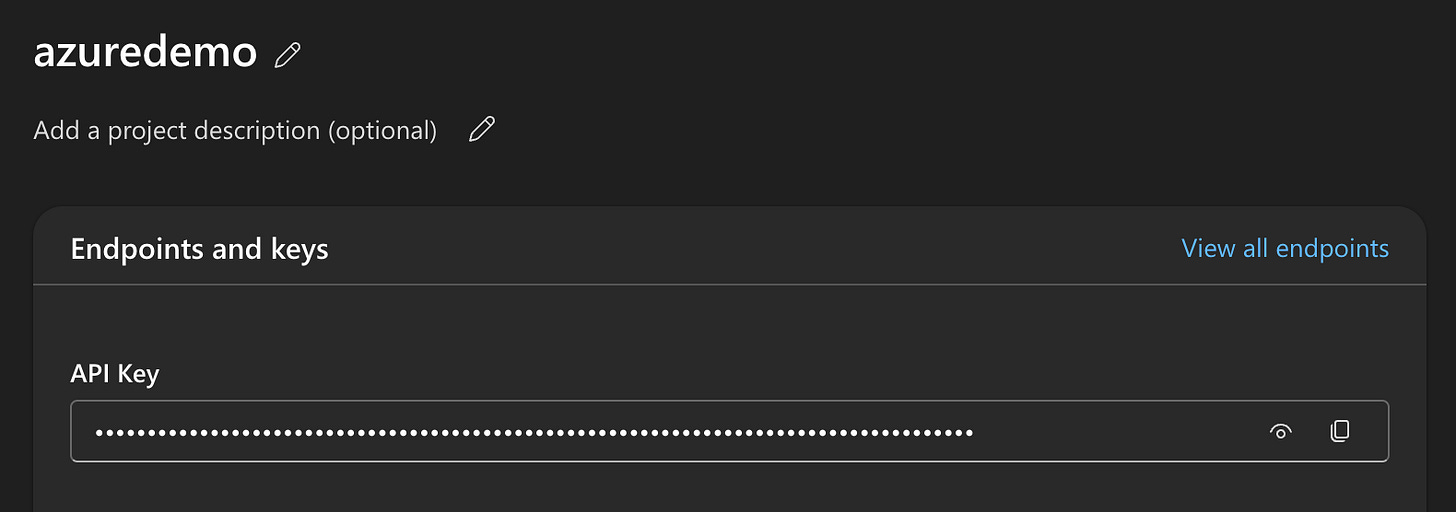 Once the project is created after a bit of time, you will see your API key, which you will need to store in AIProxy.