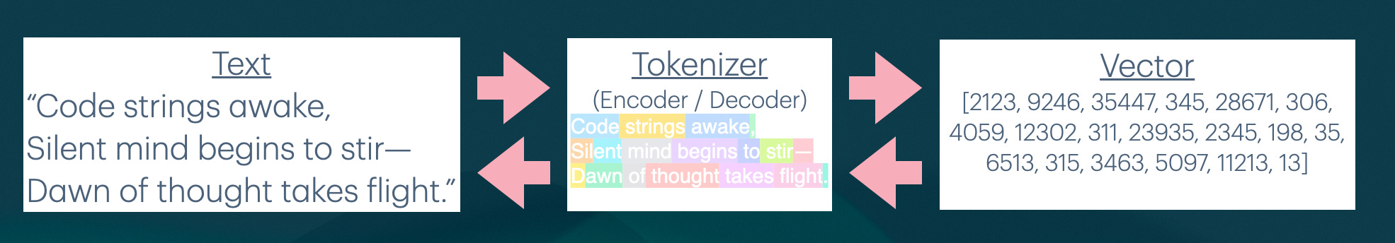 You can use the OpenAI Tokenizer or the Vercel Tokenizer to put in any sentences and see the Tokens and the ending Vector produced by the Tokenizer.